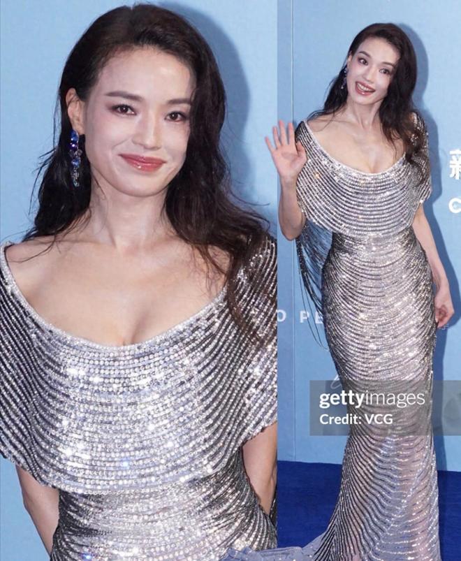 被49岁舒淇惊艳到了!穿白金霓光鱼尾裙+
