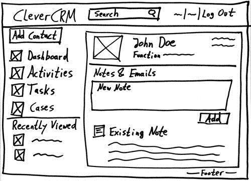 创建线框图并不需要特别的软件。就我个人而言,我倾向于使用白纸来绘制草图。我会快速地画出多个不同的布局方案,再将它们放在一起比较,扔掉那些不合适的。我通常不会使用很细的笔来绘制第一份线框图,记号笔较粗的线条会迫使我专注在重要的元素上,并忽略那些不重要的细节。