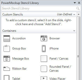 然而,PowerPoint 的一个缺点是缺少预定义的线框图元素和图标。为了解决这个问题,我和我公司决定开发PowerMockup——一个绘制线框图的 PowerPoint 插件。PowerMocku 集成在 PowerPoint 中,并提供了近 200 个 UI 元素和图标,用户可以进行拖拽。PowerMockup 还有一个特别有用的功能是,用户可以添加定制化的元素,并且和团队成员进行交换。